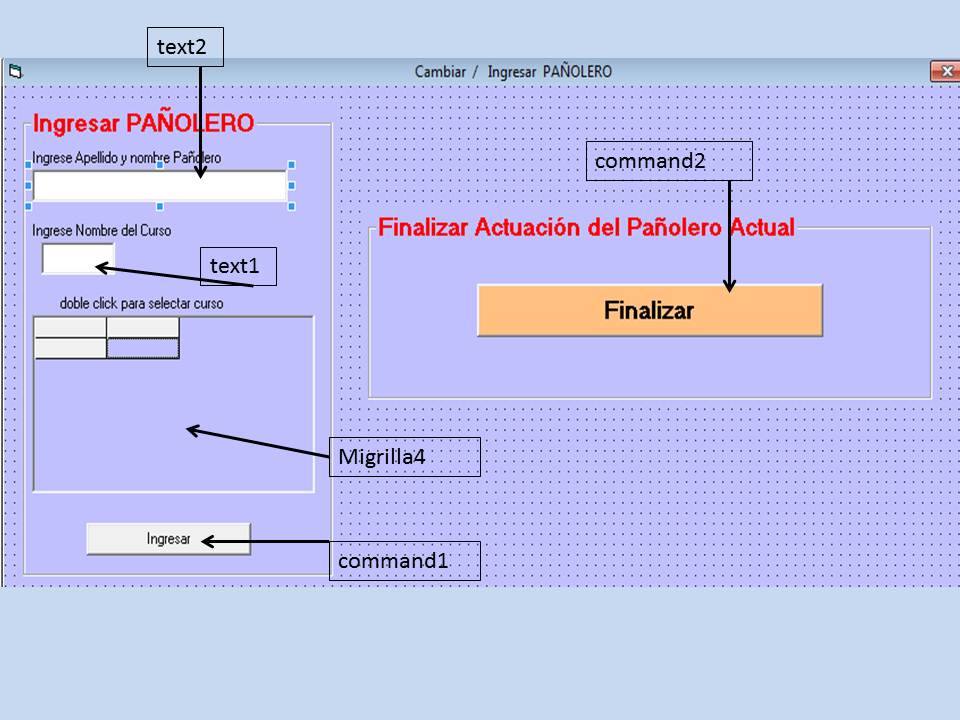 Codigo asociado a la pantalla "Agregar / Quitar Pañolero"
