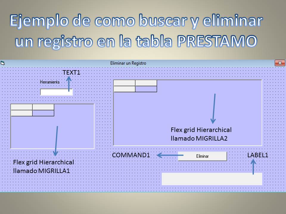 CODIGO ASOCIADO A LA INTERFAZ (BUSCAR UN REGISTRO PARA ELIMINARLO)
